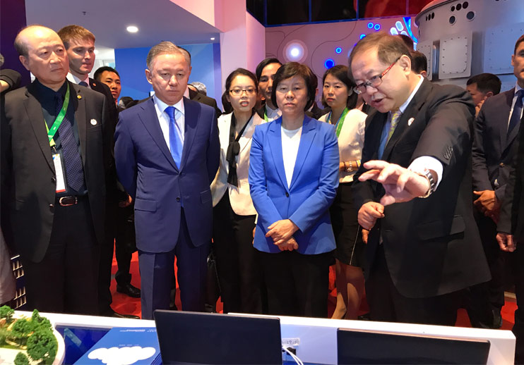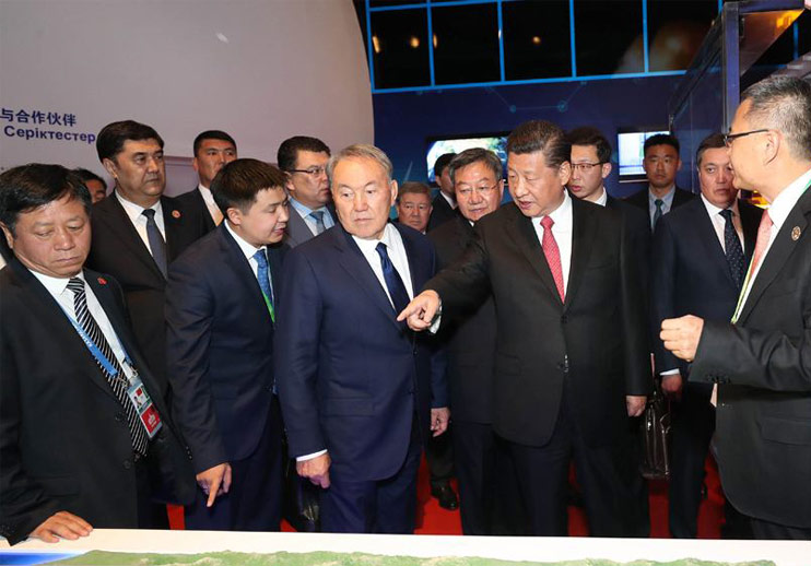 中國國家主席習(xí)近平同哈薩克斯坦總統(tǒng)一道參觀阿斯塔世博會中國館
