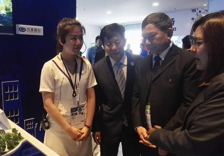新加坡貿(mào)工部兼國家發(fā)展部政務(wù)部長許寶琨參觀展臺